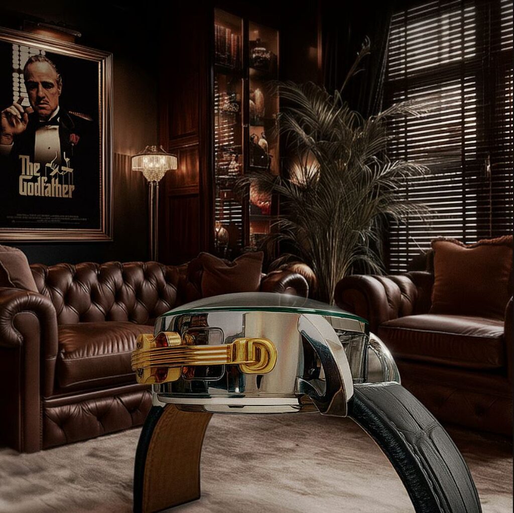 Το Godfather Sculpture Table είναι ένα limited-edition κομμάτι, με 20 μόλις να έχουν κυκλοφορήσει στον κόσμο, το οποίο όμως πέρα από την godfather αισθητική, διαθέτει και το εμβληματικό ρολόι Opera Godfather. Και το κορυφαίο; Είναι ένα γλυπτό-τραπέζι που παίζει μουσική. Οι μουσικές κασετίνες που διαθέτει παίζουν το θρυλικό theme του Nino Rota, ενώ ο μηχανισμός στο κέντρο έχει power reserve 7 ημερών. Μιλάμε για art piece που δεν αγοράζεις για να ακουμπήσεις το ουίσκι σου, αλλά για να δηλώσεις ποιος είσαι.